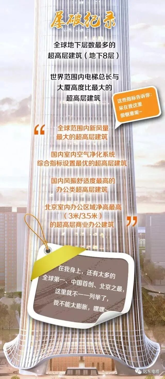 為此自2012年起,遠東電纜就開始跟進中國尊項目,與北京建筑設計院進行了多次探討,在詳細了解電纜敷設產(chǎn)品及技術(shù)要求的基礎上,開始為提供產(chǎn)品與系統(tǒng)設計方案進行周密籌備。2016年,隨著中國尊建設的穩(wěn)步推進,遠東團隊開始設計施工方案,為了拿到第一手資料,多次進入到大廈施工現(xiàn)場,進行實地考察,針對大樓特殊的豎井結(jié)構(gòu),為其獨家設計了特殊10KV高壓懸垂電纜,堪稱“私人訂制”。